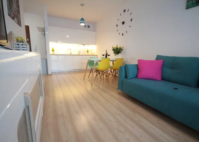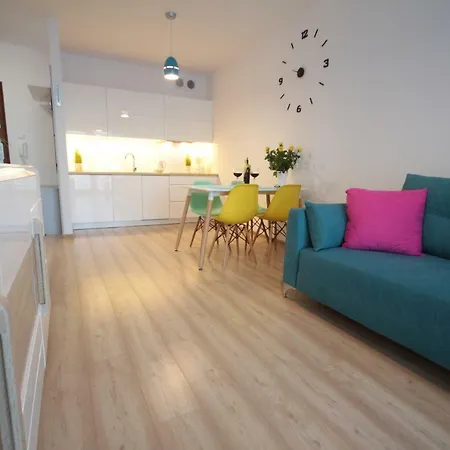 Апартаменты располагают оборудованной кухней, оснащённая микроволновой печью, кухонной утварью и посудомоечной машиной. В апартаментах вы найдёте кофеварку, что обеспечивает гостям удобное и приятное пребывание. Ресторан Fregata предлагает фирменные блюда европейской кухни в 500 метрах от апартаментов. Апартаменты находятся в паре минут ходьбы от автобусной остановки Dworzec autobusowy. Дополнительный комфорт придаёт наличие аквапарка, веранды для загара и внутреннего двора. Для желающих расслабиться в апартаментах предусмотрен оздоровительный центр. В этой местности пользуются популярностью пешие прогулки.